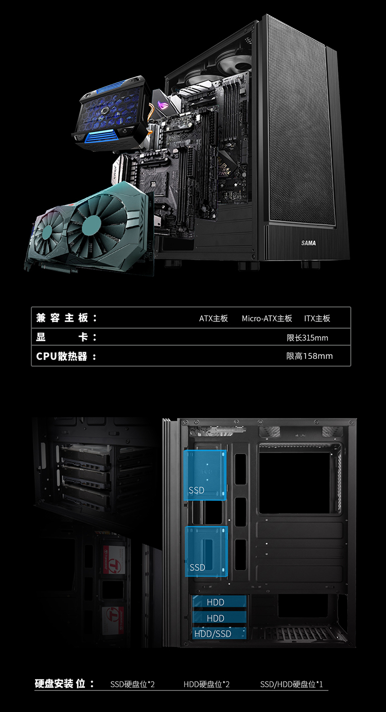 航嘉白色gx580p/x迷你黑色光影者电竞水冷matx台式机支持itx电脑atx大小游戏主机全侧透明炫酷机箱